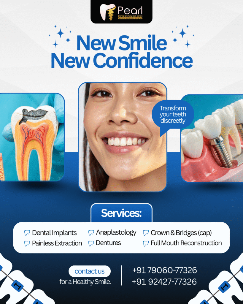 At Pearl Dental Clinic and Implant Centre, we focus on your comfort and care. Our experienced team is dedicated to providing the best dental services to help you achieve a healthy and beautiful smile. We believe in gentle and compassionate treatment, making every visit a positive experience for you and your family. Your smile is important to us, and we are here to support your dental health for life.